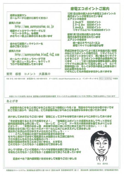 サニーシステム新聞 記念すべき?第二十四回は ・就業規則を作成中 ・新人さんの受け入れに向けて ・エコキュートの保温断熱性能を研究 ※クリ